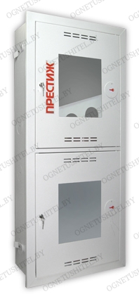 Шкафы пожарные «Престиж» предназначены для размещения комплекта пожарного крана Dy 50 или Dy 65 (с угловым клапаном) и огнетушителей общей массой до 30 кг, с кассетой для рукава.