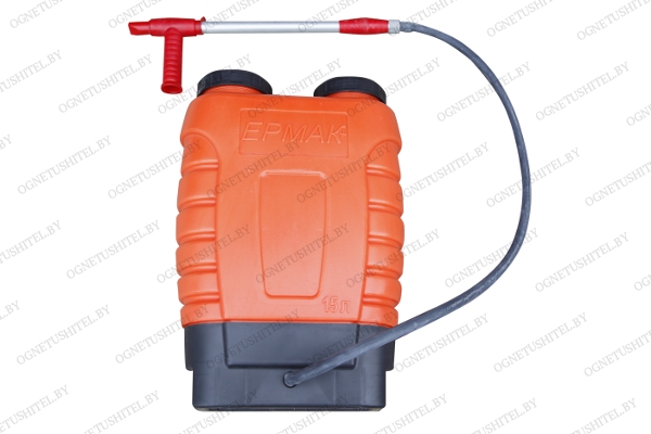 Назначение ранцевого лесного огнетушителя "РП-15-Ермак+" - тушение низовых лесных пожаров водными растворами или водой. Он имеет емкость прямоугольной формы, бачок, изготовленный из прочной пластмассы ярко-оранжевого цвета, устойчивой к воздействию агрессивных сред.