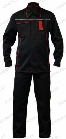 Куртка прямого силуэта с центральной потайной застежкой на петли и пуговицы. По переду отрезная кокетка. По правой и левой полочках настрочены верхние накладные карманы, с правой стороны карман, закрывающийся клапаном, застегивающимся на контактную ленту «Велькро». С левой стороны карман прямоугольной формы. Спинка с отрезной кокеткой, в шов притачивания кокетки вставлен световозвращающий кант. Воротник отложной.