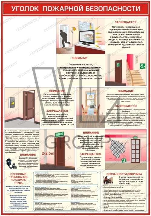 Уголок пожарной безопасности (общежития, гостиницы; карман А4)